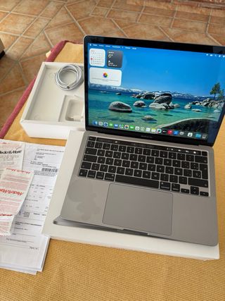 MacBook Pro 13” (2020) – i5 / 16 GB RAM – Perfetto con 4 porte Thunderbolt 3. Intel i5 quad-core, 16 GB RAM, schermo Retina. Molto curato, sempre con custodia protettiva. Funziona perfettamente, senza urti né cadute. Include scatola originale, caricabatterie e cavo Apple, documentazione, pellicola protettiva originale e fattura di acquisto da El Corte Inglés. Prezzo originale: 2.129 € (visibile in foto). Vendita per cambio di attrezzatura. Consegna a mano o spedizione ben protetta.