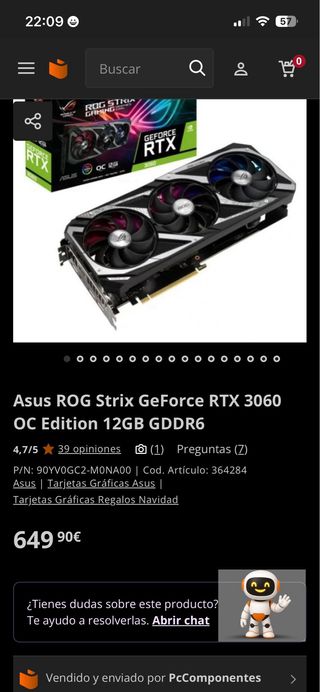 Scheda grafica ASUS ROG Strix GeForce RTX 3070 con 8GB di memoria GDDR6. - Modello ROG Strix. - 8GB GDDR6. - Compatibile con Aura Sync. - PCI Express 4.0. Vendita per aggiornamento a una superiore, posso inviare video di prova del gioco lo stesso giorno dell'aggiornamento della scheda grafica. Pasta termica cambiata 6 mesi fa.