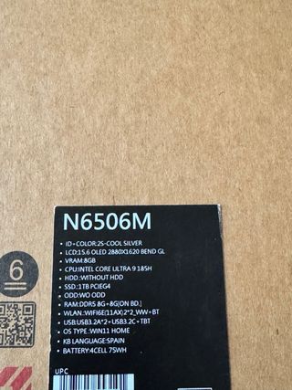 Portatile nuovo, solo provato, in condizioni impeccabili. Modello: N6506M. Processore: Intel Core Ultra 9. Archiviazione: 1 TB SSD. Schermo: 15” OLED. Prezzo originale: 2.000 €. Prezzo di vendita: 1.400 € (non negoziabile). Si consegna con scatola originale e caricabatterie.