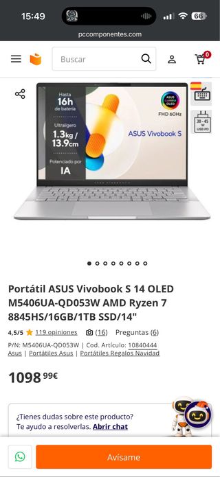 Portátil ASUS OLED Ryzen 7 8845HS/16GB/1TB