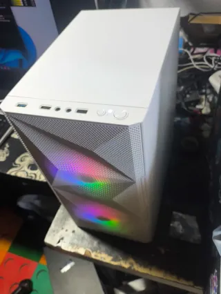Cassa mini-tower in buone condizioni, compatibile con schede Micro-ATX e Mini-ITX. Include ventole RGB frontali e pannello laterale in vetro temperato. Buon flusso d'aria e spazio per GPU lunghe e dissipatori medi. Ideale per montare il tuo PC gaming o desktop compatto.