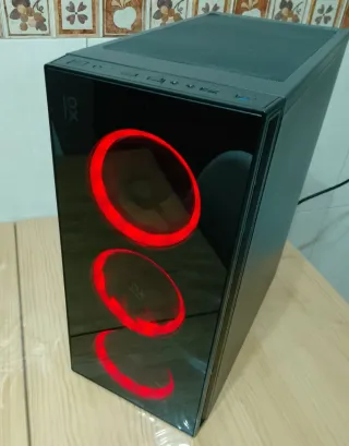 Torre PC gaming Primux IOX con accattivanti ventole. Design frontale in vetro temperato nero. Tre ventole frontali con illuminazione LED rossa. Pannello superiore con griglia per la ventilazione. Porte USB e audio sul pannello superiore. Processore I5-10400F. Memoria Ram 16GB. Scheda grafica Nvidia GForce GTX 1050 Ti. In perfette condizioni.