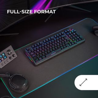 Tastiera compatta con illuminazione RGB personalizzabile. Design moderno ed elegante. Teglie retroilluminate per una visibilità ottimale. Connessione via cavo per maggiore stabilità.