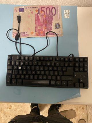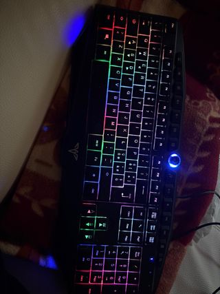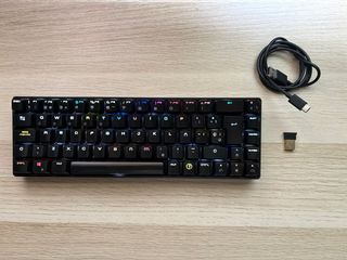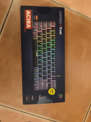 Tastierino compatto con retroilluminazione RGB personalizzabile. Design TKL (Tenkeyless). Tasti con illuminazione multicolore. Struttura robusta. 100% funzionale. Ha un po' di polvere, ma i tasti possono essere rimossi per la pulizia, anche se ho perso la pinza per rimuoverli.