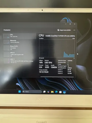 ConceptD 7 Laptop / Portatile Gaming Workstation i7 RTX 2080 32GB RAM 1TB ACER. Acer ConceptD 7 Certificato Pantone, workstation ideale per video e foto editing, architettura, gaming pesante grazie alal 2080 laptop Processore: Intel Core i7 9750h GPU 1: Nvidia GeForce RTX 2080 Max Q 8GB GDDR6 GPU 2: Intel UHD Graphics 630 Ram: 32 GB DDR4 2666MHz SSD NVMe 1TB WD ( Meno di 150h di utilizzo) Windows 11 Pro Installato Display 4K Certificato PANTONE Delta<2 Tastiera retroilluminata Compreso di Caricatore 200W Non comprende altri accessori/Scatola/Manuali