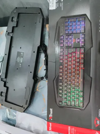 Tastiera da gaming Trust, colore nero, in condizioni pari al nuovo. Mai utilizzata. - Design aggressivo e moderno. - Layout completo con tastierino numerico. - Cavo di collegamento robusto.