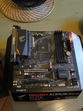 Scheda madre Gigabyte B550M AORUS ELITE. - Socket AM4 per processori AMD Ryzen. - Supporto per memoria DDR4. - Slot PCIe 4.0 per schede grafiche e SSD NVMe. - Design AORUS per prestazioni gaming.