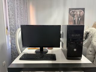 In vendita computer desktop completo, pronto all'uso. Include monitor e tastiera. - Torre computer nero. - Monitor nero. - Tastiera nera.