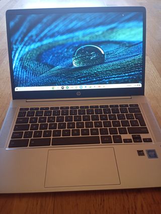 HP Chromebook 14 G7 in ottime condizioni, quasi nuovo, include caricabatterie e custodia protettiva nuova HP non utilizzata. Sistema Chrome OS, schermo da 14 pollici, 8GB RAM, 32GB Disco.