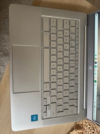 Chromebook HP modello 14a-na0026ns in colore argento e bianco. - Nuovo - Schermo da 14 pollici. - Sistema operativo ChromeOS. - Processore Intel. - Tastiera in spagnolo. Era un regalo e non è mai stato usato. Si regala una custodia protettiva.