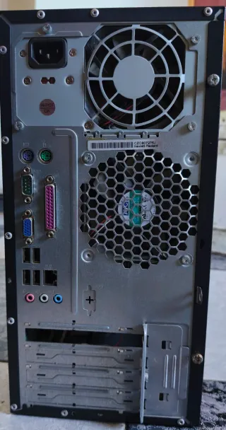Computer desktop HP Compaq Evo D500 con processore Intel Pentium IV. Senza RAM, disco rigido, DVD e floppy disk. Include una scheda grafica Nvidia Vanta 16MB a basso profilo, micro, dissipatore, cablaggio e alimentatore. Intero o in parti. Prezzo 15€. Senza garanzia. Processore: Intel Pentium IV a 1.7 GHz. Modello: Evo D500. Colore: Nero e argento.