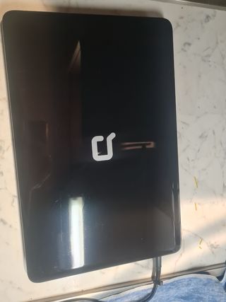 Portatile HP Compaq Mini in color nero e marrone. Compatto e facile da trasportare. Schermo da 10 pollici. Tastiera QWERTY spagnola. Touchpad integrato. Include caricabatterie di seconda mano, non è originale, ma funziona perfettamente.