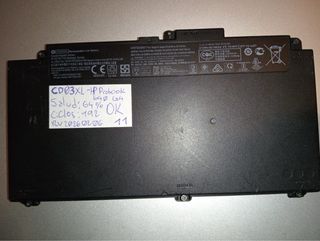 Batteria ricaricabile agli ioni di litio per portatile HP ProBook. Modello: CD03XL. Capacità: 4000mAh / 48Wh. Cicli: 220. Salute: 55.7%. Scatola75. Compatibile con i seguenti dispositivi: HP EliteBook 830 (G5 / G6), HP EliteBook 840 (G5 / G6), HP EliteBook 850 (G5 / G6), HP ZBook 14u (G5 / G6), HP ZBook 15u (G5 / G6), HP ProBook 640 (G4 / G5), HP ProBook 650 (G4 / G5). Venduto in quanto trovato, non posso garantire il funzionamento su nessuno dei portatili per cui è stata ottenuta la batteria.