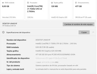 HP EliteBook 840 G1 i7 + 12 GB + 256 GB Condizioni estetiche usate ma in buone condizioni generali Funzionalmente va tutto bene La batteria funziona Viene fornito con caricabatterie originale Caratteristiche: - Processore: Intel Core i7-4600U 2,10 GHz - RAM: 12 GB RAM - Disco: SSD da 256 GB - Grafica: AMD Radeon HD 8750M da 1 Gb - Tastiera in spagnolo - Modello: EliteBook 840 G1 - Schermo HD da 14 pollici - Windows 10 Pro