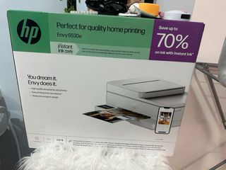 Stampante HP Envy 6530e, perfetta per la stampa di qualità a casa. Progettata per documenti e foto di alta qualità. Stampa facile da qualsiasi dispositivo. Design elegante e compatto.