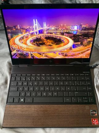 Portatile HP Envy x360 convertibile in tablet. Design elegante e versatile. - Schermo da 13 pollici. - Processore AMD Ryzen 5 3500U. - 8 GB di RAM. - Archiviazione da 512 GB. - Grafica AMD Radeon Vega 8. - Supporto per penna e touchpad. - Sblocco e blocco con impronta digitale. - Speciale edizione legno e altoparlanti Bang Olufsen. Il dettaglio più importante è quello dell'angolo della foto... funziona perfettamente. NEGOZIABILE
