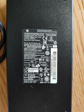 Alimentatore per laptop HP OMEN Gaming. - Modello: SK90195333 - Ingresso: 100-240V~50-60Hz 2.5A - Uscita: 19,5 V 7,7 A - Potenza: 150W - Prodotto in Cina