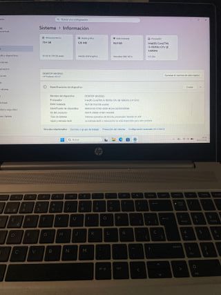 HP ProBook 450 G8 15,6" i7 1165G7, 16GB, SSD M.2 512GB, FHD. Tastiera QWERTY spagnola. Intel Core i7-1165G, Frequenza 2,8 GHz. Memoria RAM 16 GB DDR4 3200 MHz. Espandibile fino a 32 GB (2 SO-DIMM). SSD NVMe PCIe 512 GB. Include caricabatterie originale HP. La batteria è in buone condizioni: 77,9%. Sistema operativo Windows 11 PRO 25H2 Sp. Perfetto, senza graffi. L'unico difetto è il coperchio inferiore. Quando l'ho ampliato, una vite non è uscita ed è diventato inutilizzabile. Non influisce sul funzionamento e, poiché si trova sul coperchio inferiore, non si vede. Vedi le foto dello stato e di ciò che commento sul coperchio. Se hai domande, contattami.
