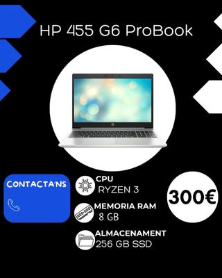 Portátil HP ProBook 455 G7 in color argento. Processore a quattro core ryzen 3 4300u. 8 GB RAM. SSD 256 GB Nvme appena sostituito con pochissime ore di utilizzo. Schermo da 15,6 HD. Windows 11 pro. Batteria in ottime condizioni. Esteticamente ha una serigrafia e qualche piccolo colpo (controlla le foto). Caricatore di un'altra marca adattato per la ricarica usb-c che funziona perfettamente con il portatile. Il portatile funziona molto bene.