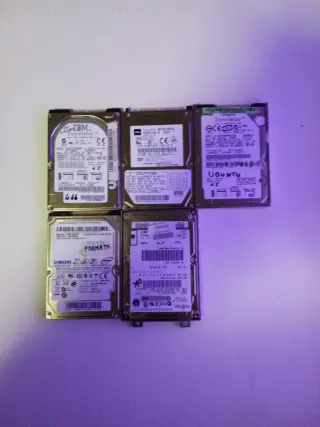 Lotto composto da 5 Hard Disk IDE. - Marca: IBM - Marca: Samsung - Marca: Hitachi - Marca: Fujitsu - Etichetta FORMAT H - Etichetta UBUNTU