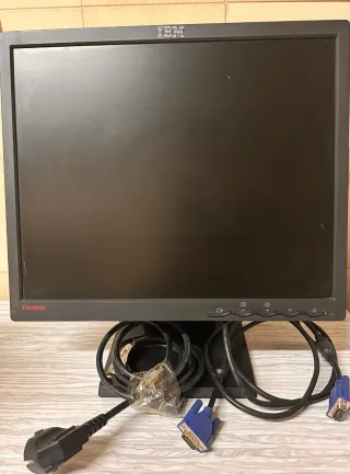 Monitor per computer IBM ThinkVision in colore nero e grigio. Include cavi di connessione. - Schermo ad alta risoluzione. - Design elegante e professionale. - Pulsanti di controllo frontali.