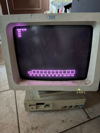 Scheda madre per IBM PS/2 modello 50Z con CPU 286 a 10Mhz e 1Mb di RAM. Funziona perfettamente come si vede nella foto.