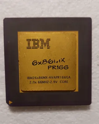 Processore IBM 6x86MX PR166. - Modello: 6x86MX PR166 - Identificazione: IBM26x86MX-AVAPR166GA - Velocità: 2.0x 66MHz - Tensione: 2.9V CORE In buone condizioni, ma senza garanzia di funzionamento.