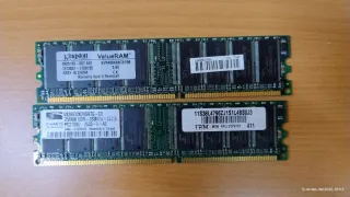 In vendita due moduli di memoria RAM. - Un modulo Kingston ValueRAM KVR400X64C3/256 da 256MB DDR. - Un modulo ProMOS PC2700U-2533-0-A0 da 256MB DDR. - Un modulo IBM 11S38L4796ZJ1S1L4BS0J3.