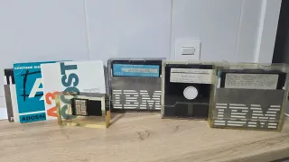Set di materiale informatico della marca IBM, inclusi dischetti e programmi. - Dischetti nelle loro custodie originali. - Programmi con le loro scatole. - Include un modulo logico ibrido IBM SLT – Solid Logic Technology, un pezzo degno di un museo. Si accettano offerte.