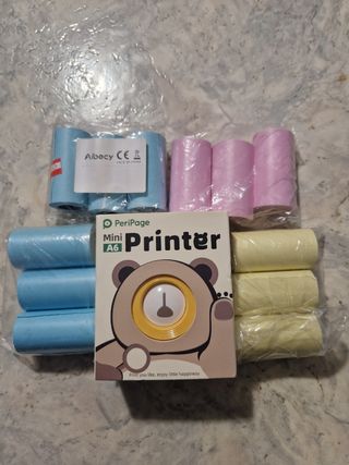 Stampante fotografica mini, foto Bluetooth, senza fili, con 12 rotoli carta/stickers, cavo USB, manuale di istruzioni, colore giallo, nuova mai utilizzata. Stampante per PC e cellulari Android e Ios.