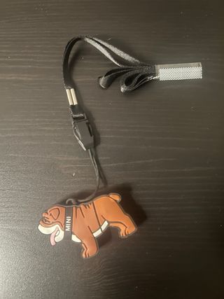 chiavetta usb a forma di bulldog con collare MINI della Mini Cooper. - Design a forma di cane bulldog. - Collare nero con scritta MINI. - Laccetto nero con moschettone.