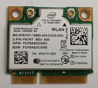Scheda Intel Wireless 760-N PCIe Half Mini Card M.2 - Modello: 7260HMW BN - FCC ID: PD97260HU - IC: 1000M-7260H - D P/N: FR7HT REV A00 - WFM: FCF8AEDC0591 - BDM: FCF8AEDC0595 - TA: H32111-001 - Made in Brazil