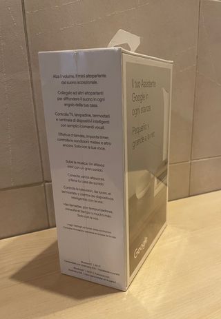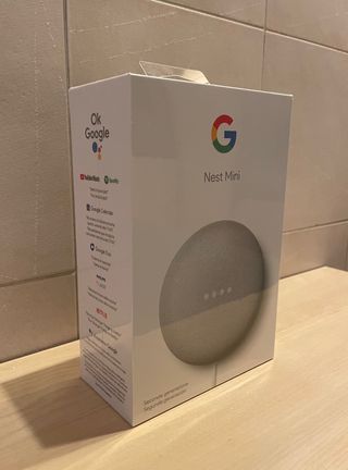 Assistente vocale Google Nest Mini, compatto e dal design moderno. - Colore grigio. - Ideale per la casa smart. completo di scatola, cavo, telecomando