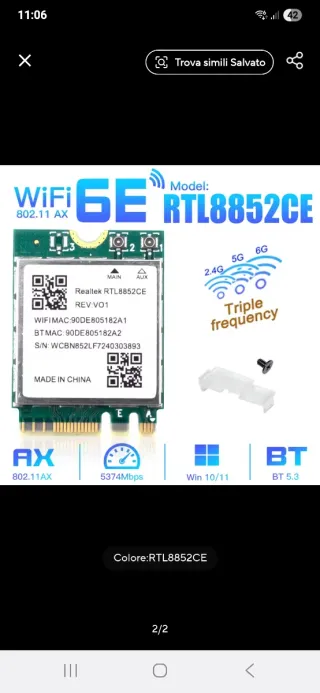 Scheda Wi-Fi 6E BT 5.3 da M.2 NGFF a mini pci