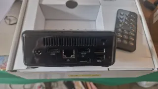 Mini PC ASRock Beebox in elegante finitura nera. - Design compatto e moderno. - Ideale per uso domestico o ufficio. - Telecomando incluso per un facile controllo.