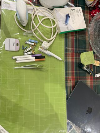 Vendo Cricut Maker con vari accessori e materiali. - Cricut Maker - Tappetini da taglio - Vinile adesivo in vari colori (rosso, nero, giallo, turchese, arancione, viola, verde) - Mini pressa a caldo - Strumenti per il taglio e la rimozione (pinzette, uncino, spatola, ecc.) - Penne per Cricut