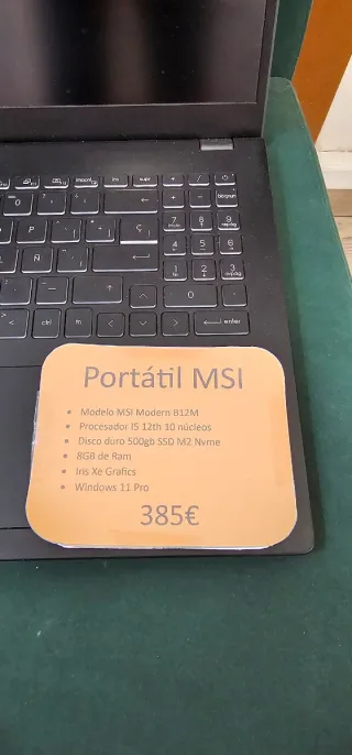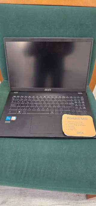 Portatile MSI in colore nero. Dotato di uno schermo da 15,6 pollici e Windows 11 Pro preinstallato. - Processore Intel Core i5. - 8GB di RAM. - 512GB SSD. - Schermo da 15,6 pollici. - Tastiera retroilluminata. - Windows 11 Pro. Nella sua scatola e con il caricabatterie originale.