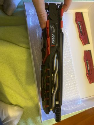 Scheda grafica MSI con design TRIO a tre ventole per un raffreddamento efficiente. Design a tripla ventola. Estetica moderna e robusta. Non ha scatola né fattura, è stata utilizzata per due anni e non è stata utilizzata per il mining o l'overclock, funziona perfettamente ma l'ho cambiata per acquistarne una migliore.