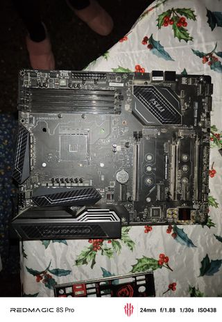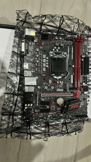 Scheda madre MSI Z390 Gaming Plus. Presenta un piccolo difetto, una delle linguette è rotta, della pci express dove va la grafica questa scheda ne ha due, ma non influisce sul suo funzionamento, ho avuto una grafica fino ad ora, fino a quando ho deciso di cambiare computer. La grafica, come sapete, è fissata con due viti, quindi non avrete problemi di spostamento. Avete una foto, dove ho indicato il piccolo difetto, anche se come ho detto prima, non influisce sul suo perfetto funzionamento. Design con dissipatori di calore. Supporto per più schede grafiche. Più slot di espansione.