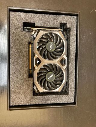 Scheda grafica MSI Nvidia GTX 1660 Super con doppio ventilatore. Design argento e nero. Ventilatori con logo MSI. Prezzo negoziabile.