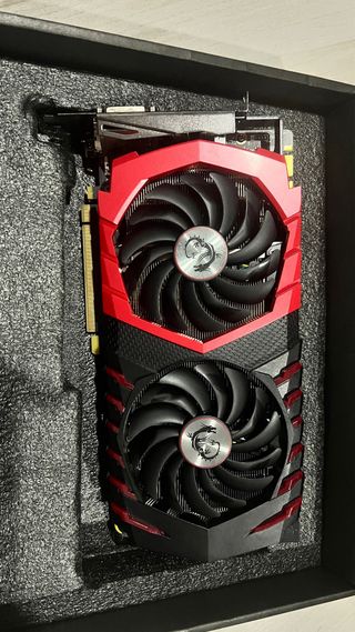Scheda grafica MSI GTX 1060 con 3GB di memoria VRAM funzionante perfettamente. Design a doppio ventilatore per una migliore refrigerazione. Connessioni video standard. Fornita con la scatola originale. Spedizioni disponibili.