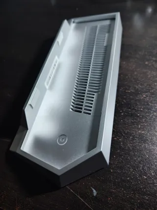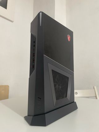 Carcasa e supporto verticale per il computer MSI Trident 3. Colore argento. Design con griglia di ventilazione.