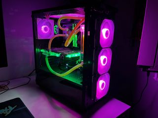 - Processore AMD Ryzen 9 5950X da 4,9GHz - 16 Core e 32 Threads - RAM da 32 GB (Due banchi da 16 GB) Trident Z Royal DDR4 a 4333 MHz - Scheda Madre MSI X570s Ace Max con WiFi e Bluetooth - SSD PCIe Samsung 990 Pro da 2 TB - Doppio SSD Sata da 256 GB Kingston e Samsung - Scheda Video RedDevil AMD Radeon RX 5700 XT da 8 GB - Alimentatore NZXT 750W 80 Plus Gold - Custom Loop con Radiatore 360mm e WaterBlock Byksky su CPU + WaterBlock Red Devil - 6 Ventole ARGB con controller e telecomando - Serbatoio con schermo LCD e temperature dell'acqua - Liquido EK CryoFuel Verde
