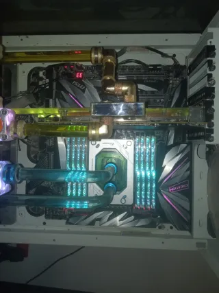 Potente computer desktop per giochi. Progettato per offrire prestazioni elevate nei tuoi giochi preferiti. - Design con illuminazione a LED - Finestra laterale per visualizzare i componenti (scatola Thermaltake) - Intel i7 6700K - Gigabyte GForce GTX 1080 Xtreme GDDR5X - MSI Z170A Gaming - G.Skill Trident Z DDR4 da 2 x 8 GB - Corsair CS850M 850W Plus Gold Modular - Refrigerazione a liquido Il computer funziona perfettamente ed esegue i migliori giochi in modo da poter giocare in modo fantastico