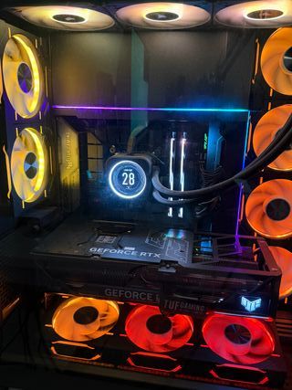 -Chasis Lian Li Dynamic Evo Mini -Motherboar Asus Rog Strix B550 gaming -Procesador Ryzen 7 5800x3d -Refrigeracion Liquida NZXT Kraken elite 280mm -ram: trident z 3600mhz cl16 -Tarjeta Video MSI Gaming Trio rx7900xtx -2 discos de estado solidos M.2 uno de 1TB y otro de 256GB -PSU Corsair S1000 v -Teclado Corsair k55 -Raton M65 elite rgb windows 11 pro