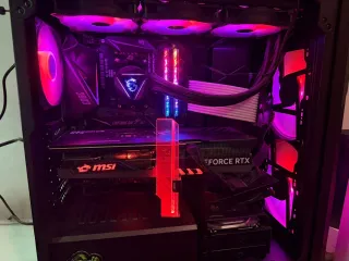 Vendo PC Gaming in ottime condizioni, molto curato e perfettamente funzionante. Ideale per giocare in 4k ad alta/ultra, editing video e multitasking. Specifiche: 🟢 Scheda grafica: NVIDIA RTX 3070 8GB 🟢 Processore: Intel i7-9700K 🟢 Memoria RAM: 16 GB (2x8 GB) G.Skill Trident Z RGB 🟢 Illuminazione RGB (scatola e componenti) 🟢 Scatola con vetro temperato 🟢 Refrigerazione liquida MSI I giochi mostrati negli screenshot sono Forza Horizon 5 e PUBG. Wallapop riduce la qualità delle immagini, ma entrambi sono con tutto su ultra e il primo va a 70 fps e il secondo a una media di 120-130.