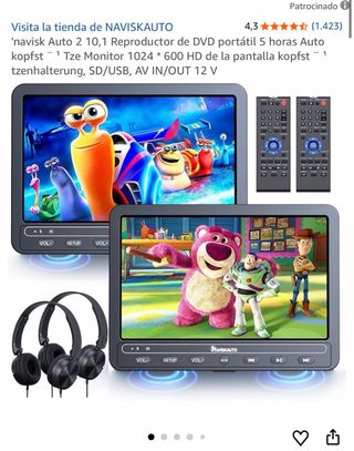 Pacchetto di due monitor portatili per auto. Ideali per lunghi viaggi. - Schermi da 10 pollici. - Risoluzione 1024x600px. - Include tutti i cavi necessari.
