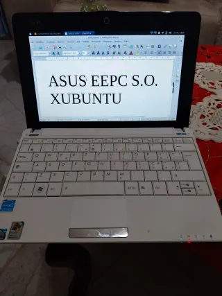 Mini computer portatile Asus Eee PC con schermo da 10 pollici. Design compatto e leggero, ideale da portare ovunque. Finitura esterna con dettagli in carbonio. Tastiera QWERTY in spagnolo. Sistema operativo Lubuntu appena formattato e installato, perfetto per computer obsoleti. Mini computer vintage, ideale per nostalgici e collezionisti. Funziona perfettamente, ma tieni presente che è un PC vecchio e non tutte le pagine web funzionano a pieno regime per questo tipo di computer.