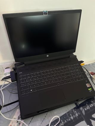 Portátil HP Pavilion in colore nero, progettato per il gaming. - Schermo ad alta definizione. - Tastiera retroilluminata. - Prestazioni potenti per i giochi. - Grafica 1650 GTX. - Processore Ryzen 5 4000 series. - Viene con il suo caricabatterie originale. Per maggiori informazioni scrivimi, la maggior parte dei giochi triple A li esegue in alta definizione senza cali di FPS, l'unico problema è che la batteria si scarica rapidamente.