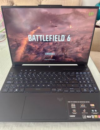 Portátil ASUS TUF Gaming F15 FX507VI-LP060 in colore grigio jager. Computer portatile da 15,6'' Full HD 144Hz (Intel Core i7-13620H, 32GB RAM, 1TB SSD, NVIDIA RTX 4070 8GB, Tastiera QWERTY ES, Con Windows 11 installato. Stato impeccabile senza un graffio, utilizzato come desktop con monitor, tastiera e mouse esterni e mai uscito. Valutato oggi a 1899€. Mantiene la scatola e tutti i suoi imballaggi originali in perfetto stato e mantiene la garanzia. Acquistato su pccomponentes nell'agosto 2024 con 3 anni di garanzia e consegnato con fattura. Prezzo valido solo fino al 11/01/2026.
